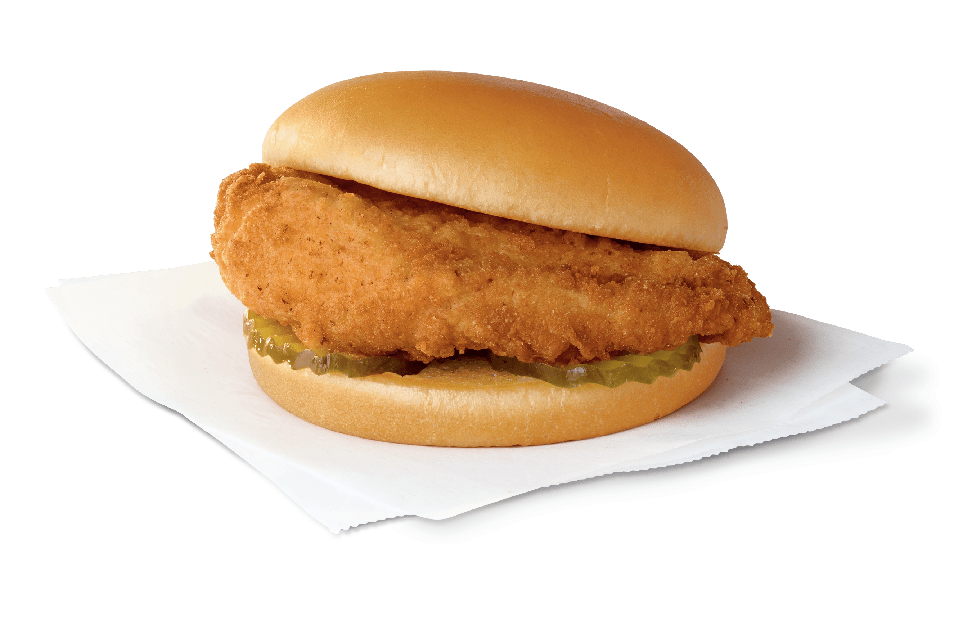 A boneless breast of chicken seasoned to perfection, hand-breaded, pressure cooked in 100% refined peanut oil and served on a toasted, buttered bun with dill pickle chips.