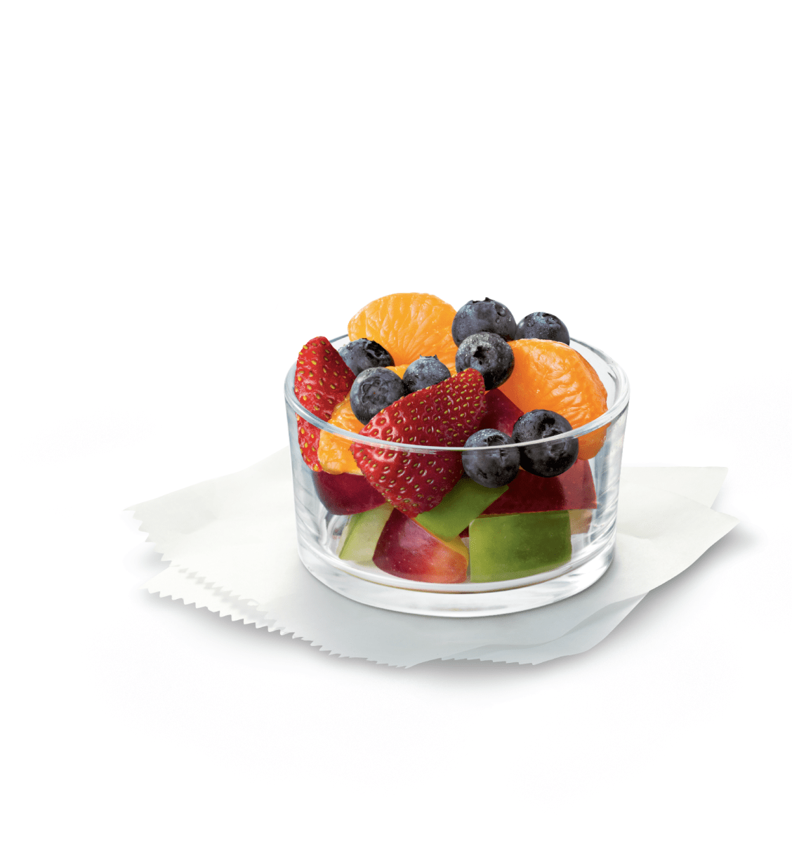A great-tasting, nutritious fruit mix made with mandarin orange segments, fresh strawberries, blueberries and red and green apple pieces, served chilled, in a choice of sizes. Prepared fresh at our Restaurant. Available in small, medium, and large sizes.